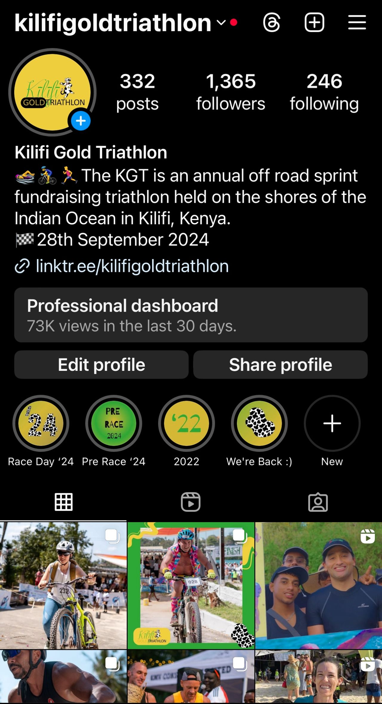 As Digital Content Manager for the Kilifi Gold Triathlon in 2024, an annual off-road triathlon in Kenya supporting social impact initiatives, I led the refresh of the event’s Instagram presence ahead of the race. The goal was to increase awareness, drive sign-ups, and highlight its partnership with the LEAF charity.